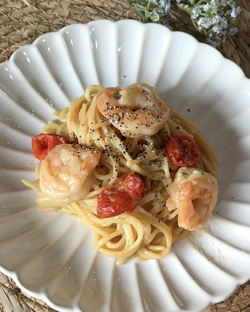 えびとトマト味の、クリーミーでコクのある一品を紹介するね!