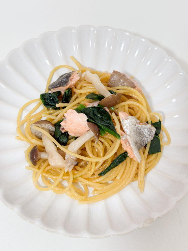 ②鮭ときのこの和風パスタ(作業時間5分)